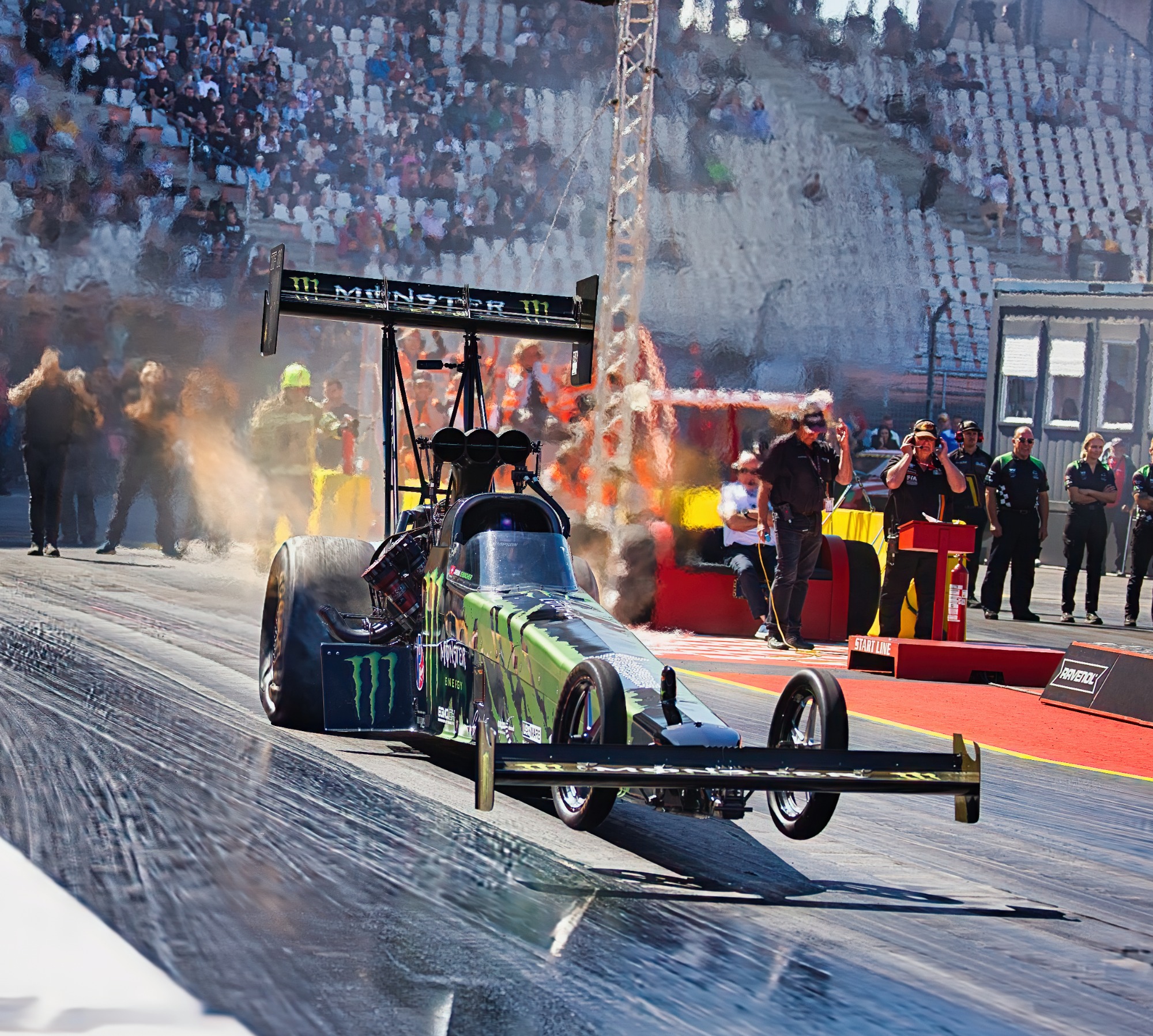 Leistungen bis zu 11.000PS sind sind je nach Motorisierung und Fahrzeugklassen möglich. Die Reaktionsschnelligkeit der Fahrer sowie ihre Fähigkeit, die enorme Leistung der Dragster auf den speziell präparierten